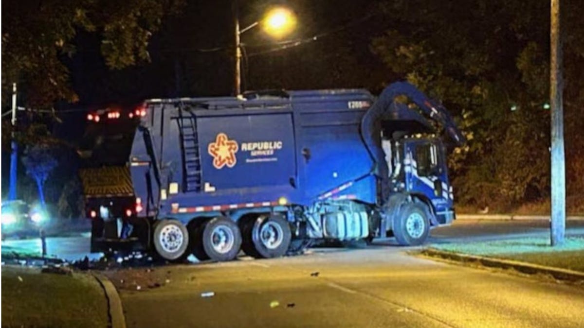 One person killed in early morning crash involving a garbage truck on Westwood Northern Boulevard.