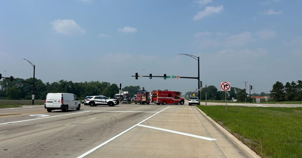 The incident occurred around 1:45 p.m. at the intersection of Main St. and the westbound Bypass 20 exit and entrance ramps. A and a sedan were involved in the collision.