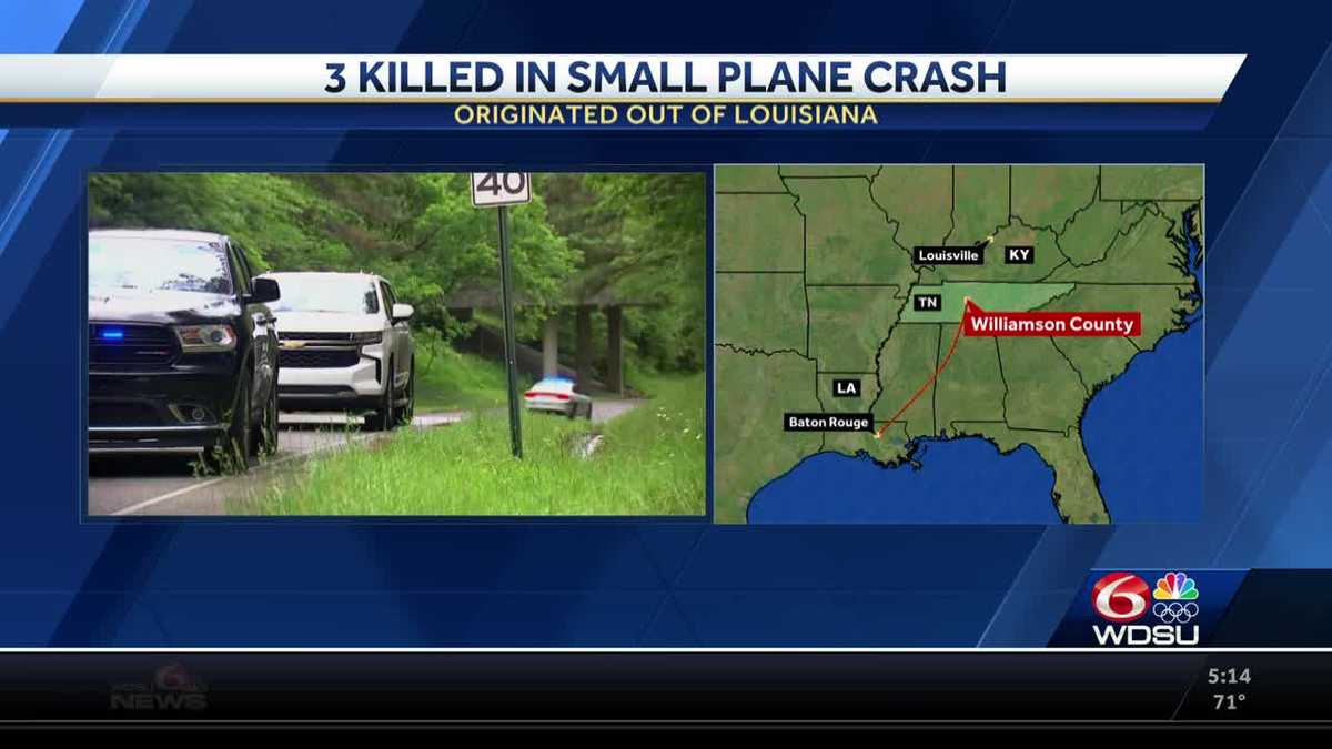 GONZALES, La. — An investigation is ongoing following a plane crash in Tennessee that killed all three people on board.