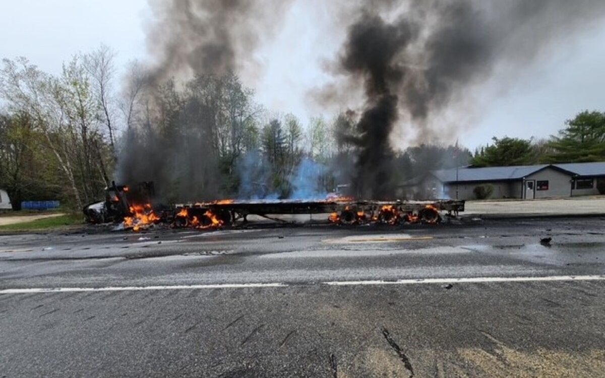 The collision ruptured the tractor-trailer’s fuel tank, igniting a fire that consumed the vehicle. Eastman was transported to Central Maine Medical Center in Lewiston with injuries that authorities described as non-life-threatening.
